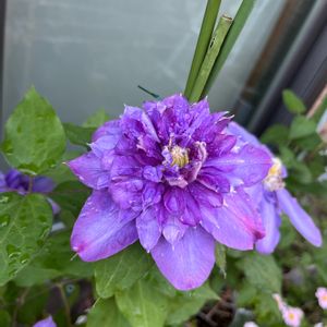 雨上がりの朝…八重咲きのクレマチスが元気に咲いています😊