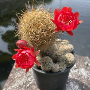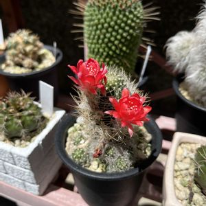 まだまだお花が咲く時期では無いのですが 本日のお花はサボテンなので載せてみました。 1枚目(屋根より高いサボテン) 2枚目ロビビア属スキリアナ 3枚目(種から育てたサボテン 4枚目白檀 こんな感じかな。 特に1枚目の柱サボテンは雪が降っても生き残れる強いサボテンです。