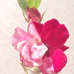 💓突然変異💓!?!? びっくり!!!お庭のアンジェラさんが 見事な、ハーフandハーフカラーに👀❣️❣️✨✨ ほんと不思議!!! 一枚の花びらの真ん中を、キレイな直線で、 半分ずつ濃いピンクと淡いピンク色にわかれています😃💓✨