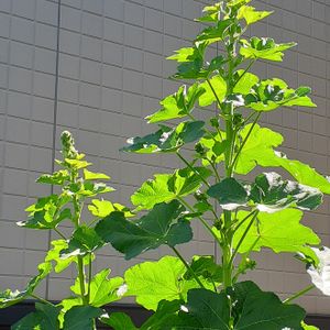 タチアオイが 咲いていました。💚💛