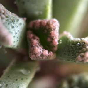 ブツブツを見ていると、痒くなってきそうですが、面白い多肉。 まだ花は見れてません。 これ、葉挿し無理なんですかね? 葉色が変?、葉挿しは失敗かな~。