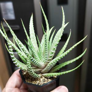 ハオルチア 『白蝶』 上は『白蝶』 下は『白鳥』 で手に入れた物ですが 白の入り方が違うので、名前が違ったから買った訳ではないのです😊 真ん中真っ白の子は白すぎてプラスチックのようです😁 下の子の霜降り具合はA5ランクの肉のようです😍💕💕🤤 あぁーめんこい💗めんこい💗 という事で 🏷毎月16日は色の日 参加します🙌😆✨