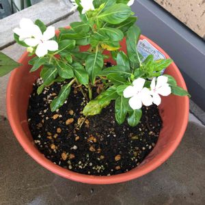 天使のビンカ 八重咲きのニチニチソウ🌼 可愛かったので 寄せ植えってみましたが、他のがまだまだ咲きそうにない苗なので 全貌は後程😃
