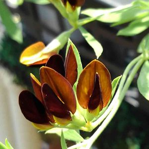 こちらも鎌倉へのウォーキングの途中、 長谷の通りのお店屋さんの店先にたくさん咲いていました♪ まっkyさんに教えて頂き、ロータスブラックムーニーと判明しました。 花?葉っぱ?と迷うような、不思議な花。 マメ科の植物だそうです🌱 茶色い花が可愛らしいですね❤️