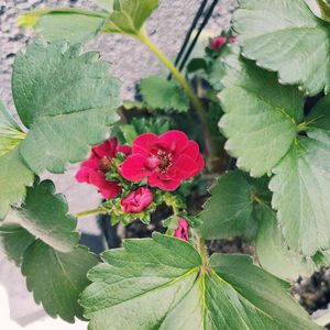 赤花のイチゴ 急にたくさん咲きました🌹 いつも 名前ど忘れしがち ストロベリー🍓