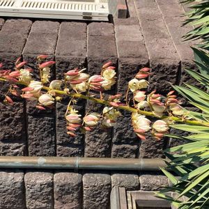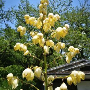 おはよう御座います🙇♀️(母No.61)実家隣の家の入り口に大きく立派に咲いていたこのお花なんだろう?‥と母より‥教えて下さい💕 キミガヨランと教えて頂きました😃ありがとうございました🙇♀️💕