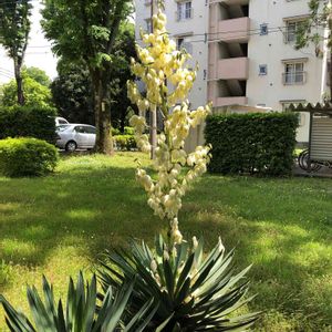 散歩先で、いきいきと咲いているのを見て、思わず足を止めました。😃💓 白っぽいお花がキラキラ輝いて見えました。😄✨ 🏷️金曜キラキラ 付けさせてください。😊 banbankbさんに、キミガヨランだと教えていただきました。😄 ありがとうございました。💕 頑張ろう❗日本‼️ 👊✨