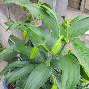 カサブランカです😘 ひとつの球根から2本出て来てます 嬉しいですね~、 亡くなった主人が好きだった百合でした 昔を思い出して植えて診ました、🥰
