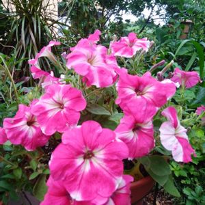 今日のお花 ペチュニア 恋のしずく 冬越しして、暴れてたので切り戻して、最近やっと咲いてきました!! また、梅雨に逆戻り?? 軒下に避難です!!!