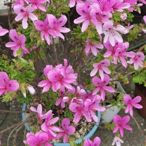 玄関前のハーブゼラニューム 手をかけずとも咲いてくれる 葉っぱはいい匂いだし✨ いい子✨✨✨