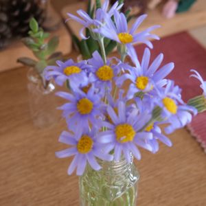 明日から梅雨の走りのような予報です。 雨が苦手なブルーデージーさんの 花を摘み取り安全な場所に株を 移動させました。