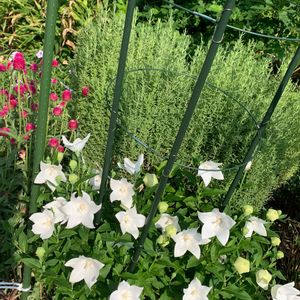 切り戻しのキキョウが咲き始めました 茗荷の葉っぱが枯れ始め季節の移り変わりを感じます