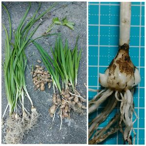 フリージアの鉢の中から、数年前からハタケニラが出てくるようになり、見つける度に抜こうとするも途中でちぎれ、また出てくる…を繰り返していました( ´-ω-) そこで、ハタケニラを取り除くため、鉢の中身を全部出してみたところ、根茎には、もう、鱗茎がついていました(^_^;) 種子でも、この鱗茎でもふえるようです( ´-ω-) ハタケニラ(畑韮) ヒガンバナ科ハタケニラ属の多年草 ニラに似ているが、別種。ニラ臭もない。繁殖力が強く、農地では、強雑草とされている。 これから、きれいな花が咲くのですが、多々、難あり…(^_^;)