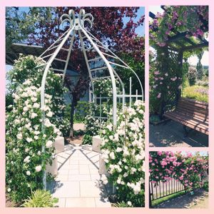 昨日梅雨入り前にと越後丘陵公園香りのバラ祭りに行って来ました🚗 ①お出迎えはいつも入り口近くのアーチのコンスタンスプライ 曇り空で残念! ②アーチのピエールドゥロンサール 我が家のピエールもいつかこんなになってほしいけど… ③宿根草も素敵でした✨ ④可愛いハンギングたち ⑤フラワーサークルから出品した館内のマイ作品 今年は白でまとめてみました バラはまた少しずつupしたいと思います🌹