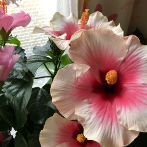 昨日は熱で1日お休みしていまいました😅 軒下に避難しているグレイスさん🌺 昨日手前のお花が双子ちゃんで咲いて、今日は奥の1つが咲いて、美人三姉妹に🌺 ロングライフのハイビスカスさんは華やかに咲いてくれて嬉しいです🥰