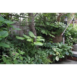 ◆いつもの箱庭 花の無いギボウシばかりが目立つ箱庭の梅の木の下の日陰です...