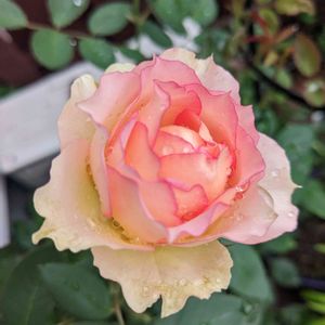 🌹ヤリター🌹 スッキリ綺麗な花で大好き💕 花びらに少し切れ目がはいりピンクの縁どりが綺麗な豪華な薔薇です💖💖 2016 大苗 鉢