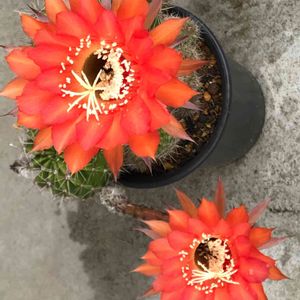 右からエキノケレウス属モリカリ 花の直径は、約10cmです。 その右エキノプシスの交配種 その右の手前は、レモンベ−ル その奥ロビオプシス属の交配種 一番火では、紅播竜です。 イットキに咲きます。