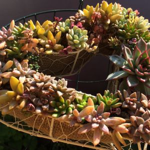 多肉植物ハートリース✨ 🎅Merry Christmas✨🎄✨ kokorozukushiさんのハートリース💚✨ 9月にプレゼントでいただいて9月25日に初めてpicしました😊 その時はさわやかなグリーン💚💚💚 今では それぞれが紅葉して鮮やかに💛🧡❤️ メインはエケベリアのクリスマスイブです❤️ 今日の日にぴったりです☺️🎄✨ kokorozukushiさんネットで検索すると色々なハートの商品があってとっても可愛い〜💙💜❤️