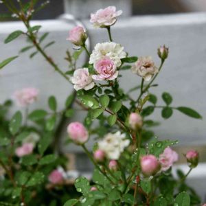 【姫バラ ワンダーファイブ】 今、白色🤍が多く咲いています♪ 気温が高いからでしょうか❣️ 今日は、雨が降るようで私は外出する為、姫バラ ワンダーファイブとミニバラ🌹ホーカスポーカスは、お部屋の中で過ごしてもらい、他のキキョウシスターズやプチダリアはフェンスに出して来ました◟̆◞̆ ❁