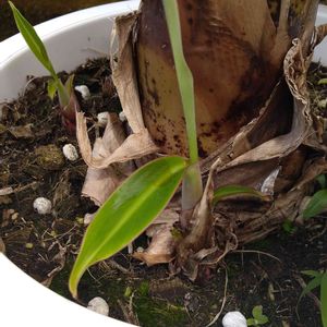 三尺バナナ 子株が4つ有るのだけれども、分けることは出来ないのだろうか??? 鉢も大きくしてあげたいのだが(^_^;)