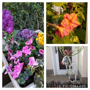 まだ、オシロイバナが😳 寄植えとクリスマスの飾り💖 夜はイルミネーションが可愛いお宅です🥳