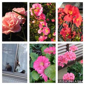 今朝の綺麗な花達と何時も会うニャンコ達💖🥳