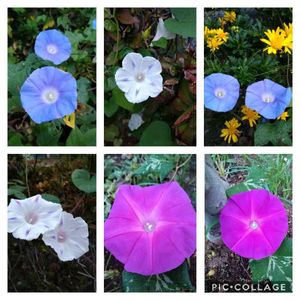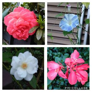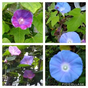 おはようございます🥰 シレネとド根性朝顔さんの定期便☺️ 右端上は、お地蔵様のシレネです。朝顔さん、雨に打たれながらも咲いてます💖💖💖