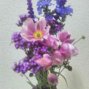 これも庭の花です アズレアもバーベナもパラパラ落ちて 切花には向きませんが飾ってみました