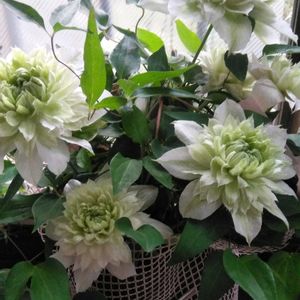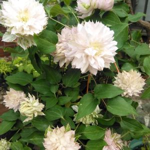 おはようございます☁️ 2年目のクレマチス・春姫👸 優しい色合いで満開になりました💗🌿 緑がかった花びらがピンクに変化♪❤️ 今日も安全にお過ごし下さいね☘️