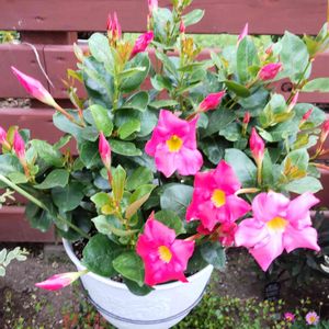 昨年挿し芽苗をいただき冬越ししたマンデビラ 咲き始めたら勢いが止まりません