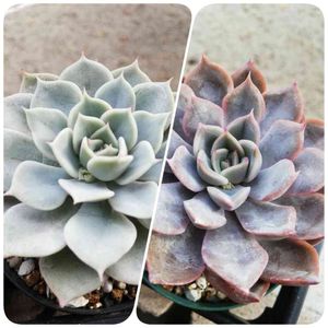 う~ん(´・ω・`).。oஇ まだ梅雨には早いのに、湿気と曇天は、まるで梅雨の走り…😞 気温もそこそこ高いので、夏の水遣りと同じにした方が良いのかと思案中😔 やっぱり、これも温暖化の影響なのかなぁ…。 化学系のYouTubeとか観ると、地球は氷河期に向かいつつある、とかいう情報もあるのだけれどね( ̄▽ ̄) まあ、暑くなるにしても寒くなるにしても、極端な状態になる頃には私はこの世に居ないでしょう(笑)。 でも、後世の人達の為に、出来ることはやっておくつもり😊 緑を増やすぞぉー、とか言って多肉ちゃんを増やし過ぎて、棚問題が発生中( ̄▽ ̄;) 棚問題は、特別給付金で解決かな!?(笑) で、今日の多肉ちゃんは『フルールブラン』さん🌼 周年あまり変化はないけれど、ロゼットの形と葉の付き方がとても好きな子💗 ブルーぽい葉色も好み(*ˊ˘ˋ*)🎵 ピーコッキーの種類なんかもこんな色で大好きだったりする(﹡ˆ﹀ˆ﹡)♡ ホント、可愛いよなぁ~💓💓💓💓