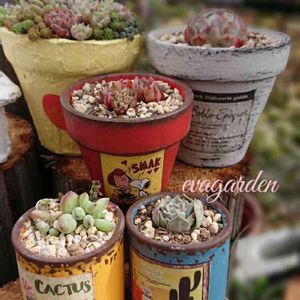 タルト鉢とセリアのコーヒーの入れ物に寄せ植えしてみました😊
