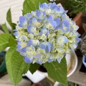 四季咲き紫陽花 霧島の恵 今年お迎えした子で、これは二番花?です。 二番花はどんな大きさかな…と思ってましたが、手のひら大の大きさがありました! 色は、ここの土だと今のところこんな色。 一番花はもう少しブルーっぽかった気が…。 一つの株でも、ブルー系になったりピンク系になったりするようです。 来年の通常の紫陽花の開花時期には、どんな感じにさいてくれるのか、楽しみです。 …その前に、秋にも開花してね♥
