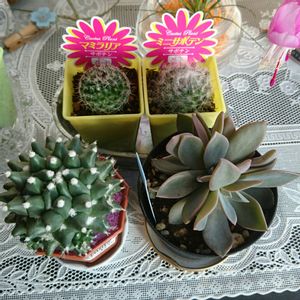 本日仲間入りしたエケベリア(初恋)とサボテン🌵ちゃんです🎵 サボテン🌵の名前は、書いてなかったので判りません💦判る方教えて🙏