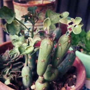 まるで緑のレンコンのような・・・ セネシオ・七宝樹 ハゲチャビンだった夏は 太陽をいっぱい浴び、 秋になり葉が伸びてきて・・・ 背丈もかなり伸びたので、カットして株分けしました。 今は日陰に置いてますが元気♪ 根付いてくれたようです。 来年はお花、咲いてくれるといいな。