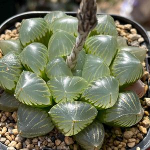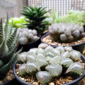 ●ススキノキ科 ツルボラン亜科 ●ハオルチア属 ●ジェリーフィッシュ😻😻 (交配種) 梅雨が明けてから晴れが続いてるのはいいが… めちゃくちゃ暑い…😅😅 ハオルチア達は、遮光ネットの下で光は軽減されてて安心な反面、暑さで根腐れしないか心配。😅😅😂🤔🤔🤔