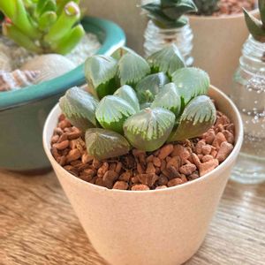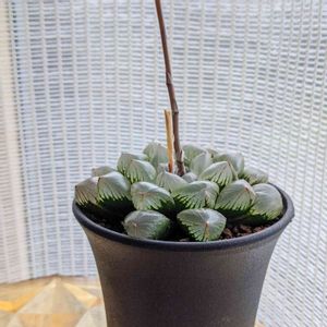 憧れのジェリーフィッシュ。 ヤフオクで出会ってしまい、気付いたら入札していました💦笑 ぷくぷくで綺麗ー! この綺麗さを保てるよう頑張ります。 手持ちの鉢が少し小さかったので、暫くしたら引っ越しかな。 ハオルチアもいくつか持っていますが、全てブラックポットで統一したら良かったかなーと後悔💦 株を活かせて、軽量で、お求めやすい鉢に出会えますように🙏笑