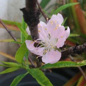 昨日もアップした名無しの権兵衛の耐暑性桃の続報です。 この通り開花しましたが、花粉はまだ出ていない様で、蕊も何か弱そうに見えるので、結実はちょっとキビシそうに思えます。