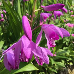 紫蘭か咲きました 鮮やかな赤紫色です 小さな庭が明るくなりました