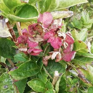 あじさい。 じっ~と見ていたら👀真ん中辺りに でんでん虫虫かたつむり🎶🎵角出せ🎶🎵🐌