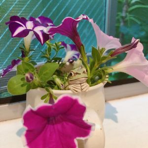 仕事から疲れて帰ってきて、こんなお花が出迎えてくれたら、何だか疲れが吹き飛びます🥰🥰🥰 ピンクのペチュニア、なんて可愛いのでしょう…!💘 この寄せ植えは密集しすぎているので、少し数を減らさないといけないのですけどね😂 この可愛さを見て頂きたかっただけです😆✨