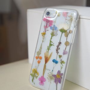 某ハンドメイドグッズのアプリで購入したスマホケースです。 と て つ も な く 可 愛 い ! 入れているお花は、ヒナギク、カスミソウ、スノードロップ、リトルリリー、スノーボールとのことです。 お花好きにはたまらない作品です✨✨