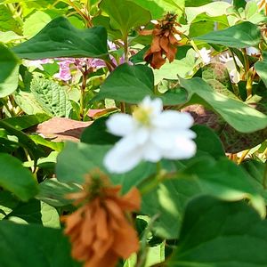 温かくて☔が続くとドクダミはがぜん元気になりますね。 八重のドクダミの花はまるで貴婦人のドレスみたいです😍 でも、繁殖力ハンパなくて、「写したら抜く」です😁😄😂