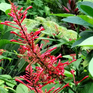 植物園で出会ったこの花は ベニツツバナ(紅筒花)です。 元々 メキシコや中央アメリカの林や林の周辺に自生し高さ2m位になる低木です。 枝先に円錐花序を出して 長さ3cm位の赤い筒状の花を咲かせます。 花期は 6月〜12月頃ですが 温室では 1年中開花するようです。🤗✨ メキシコ 中央アメリカ原産。 キツネノマゴ科オドントネア属 常緑低木。