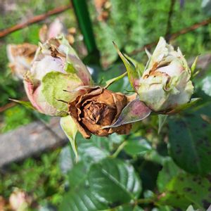 23番目のバラは、コフレでした。 去年の秋に中苗を購入したので、初の開花です。 コフレの花を見たことがないのですが、蕾が固くて上手く開いていない様に見えます。