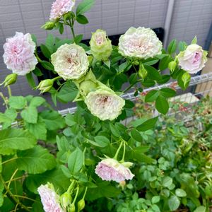 コフレも咲いてた‼️ 平たい夏顔🙄 今日夏剪定本日頑張ってやり切りました👍 とはいえ、ピエールさん、クリスティアーナ、パレード、フロレンティーナ、コーネリアのつるバラはそのまま放置です 花瓶が足りなくて、孫ちゃんのお砂場用バケツ🪣まで借りてカットしたお花を水揚げしてます こんなに咲いてくれてる💓 秋はどうなってしまうのかしら🥰 妄想ににやけてしまいます