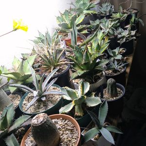 こんばんは。 我が家のアガベとサボさん🌵です。 ベランダに出しっぱなし。 出張先から投稿します。