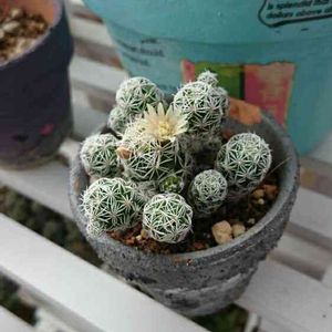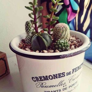 友達に作ってもらったセメント鉢にステンシルしてみました✨そして、ホームセンターで30%だったバニーサボテンをIN😊