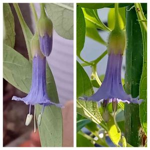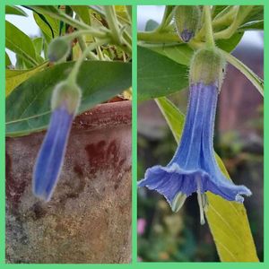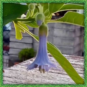 ブルー ミニ エンゼルトランペット 昨日 咲きました。 おはようございますm(_ _)m 今日は☔マークです。